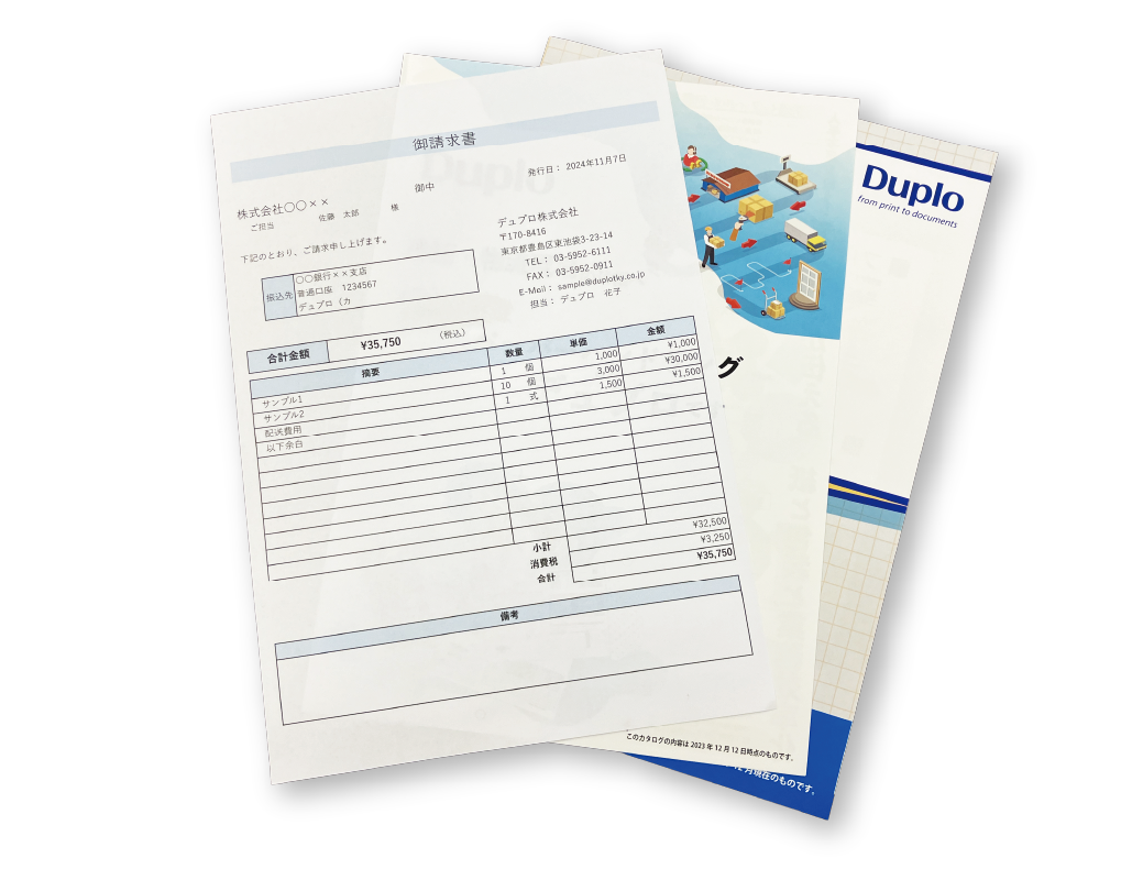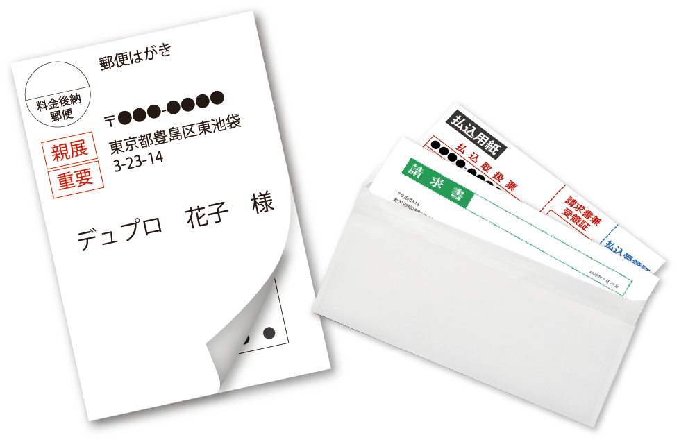 請求書などの他に、返信用封筒やチラシ・案内状などの広告も一緒に同封できます。
