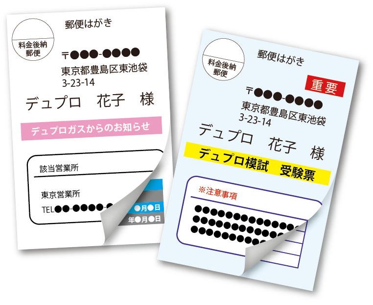 糊の関係で全面に印字などはできませんが、 DM作成のハードルが低く、