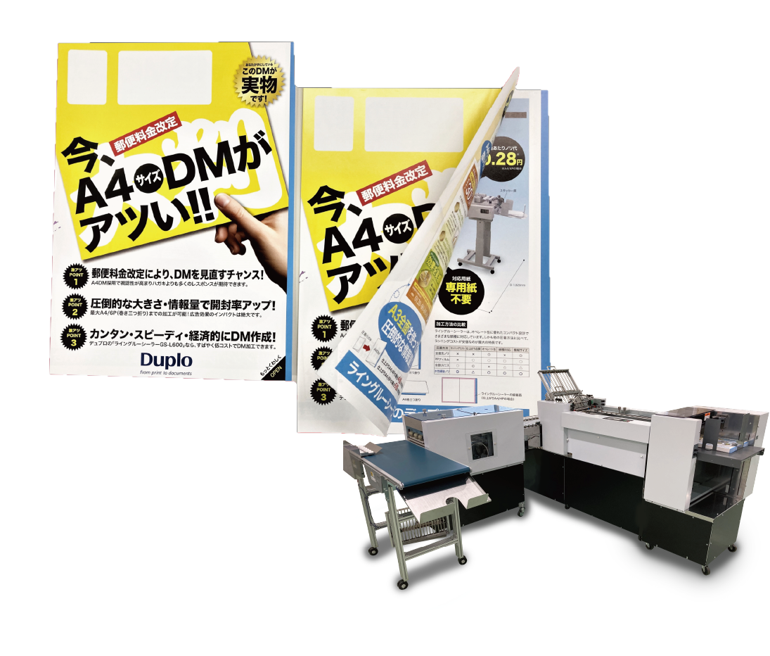 このように封筒から封入封かん機までデュプロからご案内ができます。