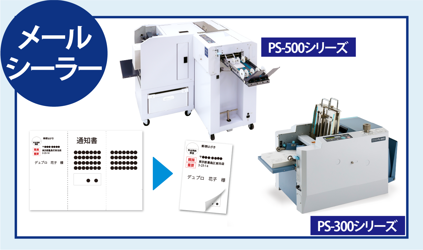 また、PS-500シリーズならば8,600 通/ 時(二つ折りハガキ)の高速圧着を実現。