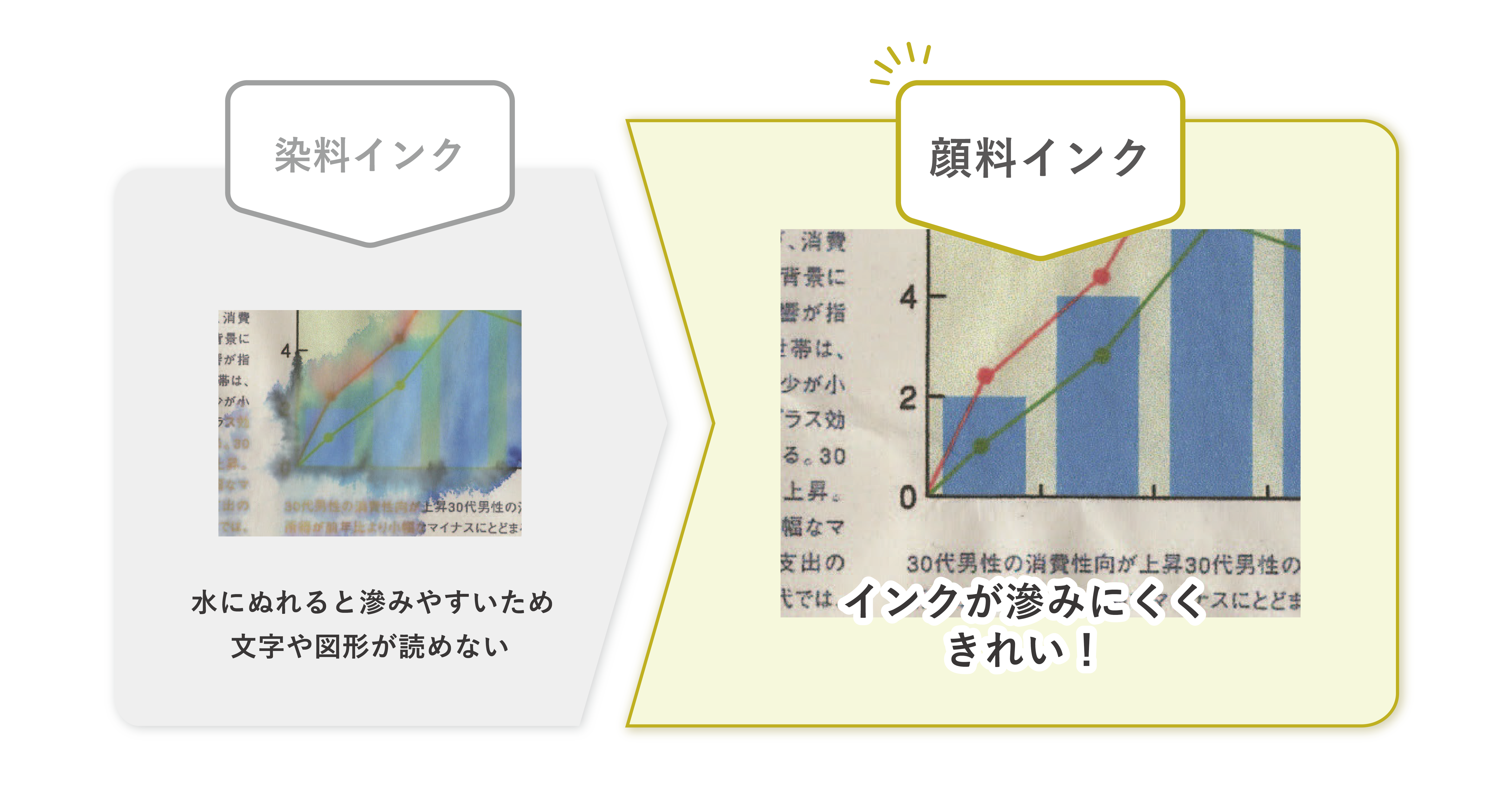 〈LX〉〈LM〉シリーズでは顔料インクを用いているため、