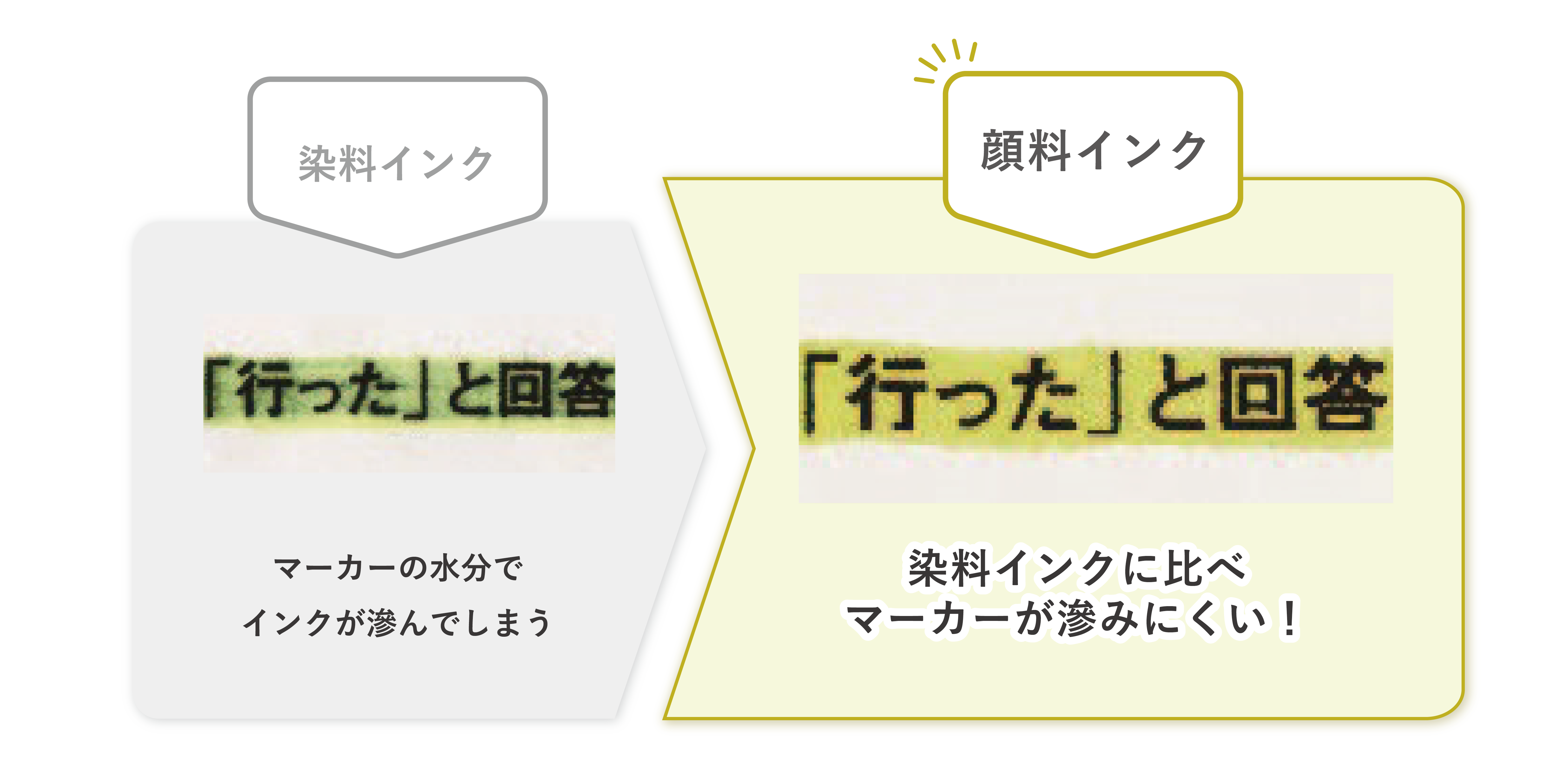 水性マーカーを引いても文字が滲みにくいので、教材の印刷にも使用できます。