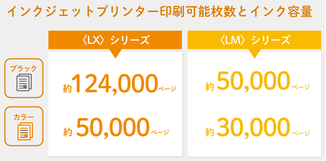 インクジェットプリンターであれば、大容量インクの搭載で、