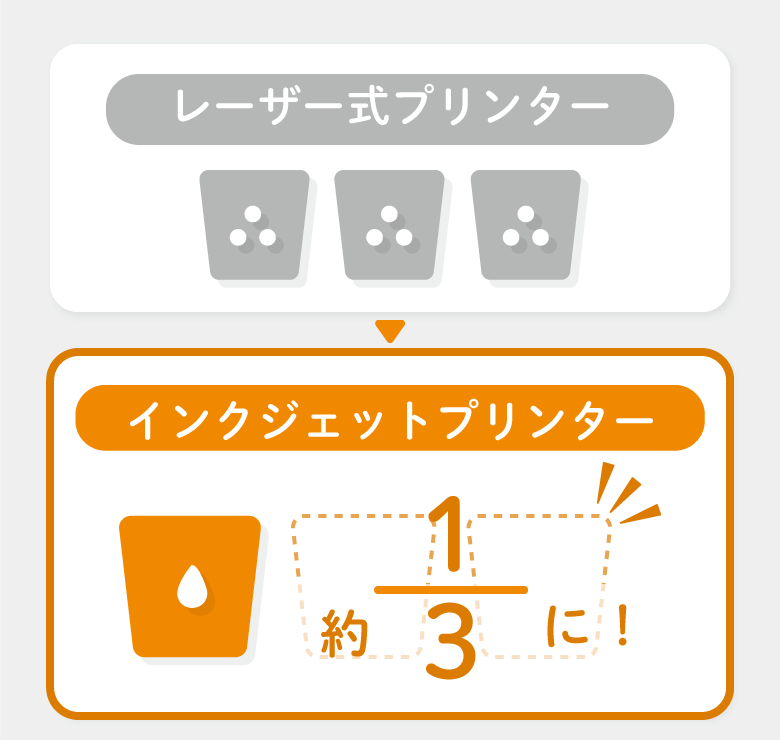 トナーの交換回数に比べ、インクは約1/3で済むため、