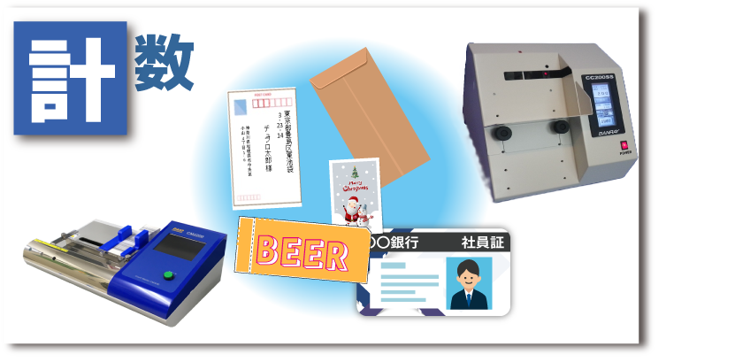 ハガキ・封筒はもちろん商品券やカードの計数も可能なので、