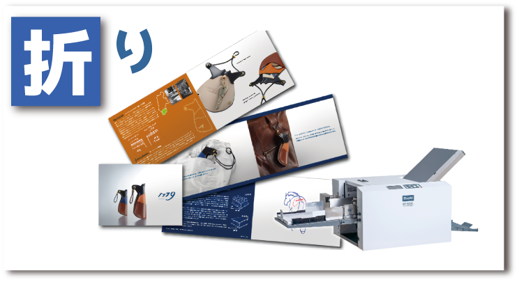 インデックス製本も可能な、中綴じ製本機の最高峰「鞍掛け中綴じ折り製本機」。