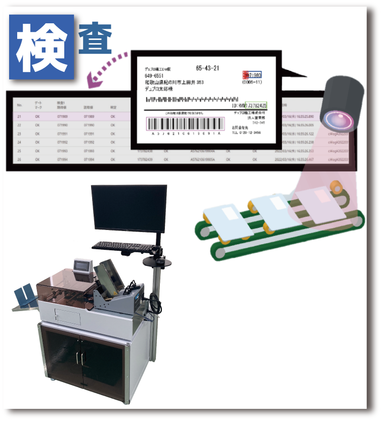封筒やハガキに印字される連続番号、 郵便番号、バーコードなどを読取り、