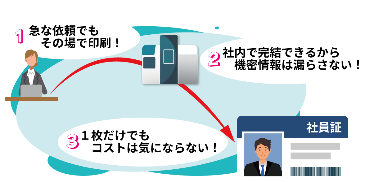 インクを直接転写する為、スピーディに低価格に発行できるのが特徴です。