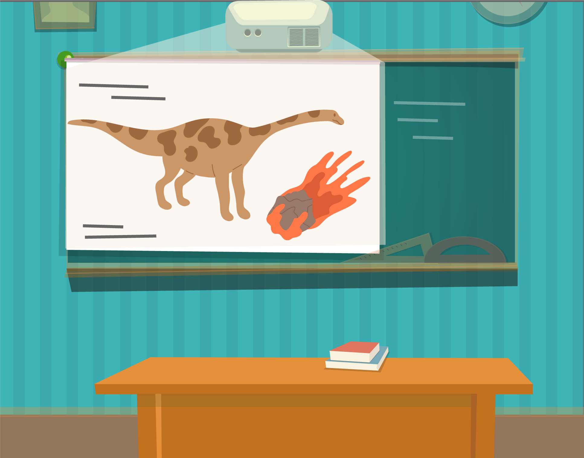 いつもの黒板も使用できるから、定規や大判用紙を貼って授業も可能。