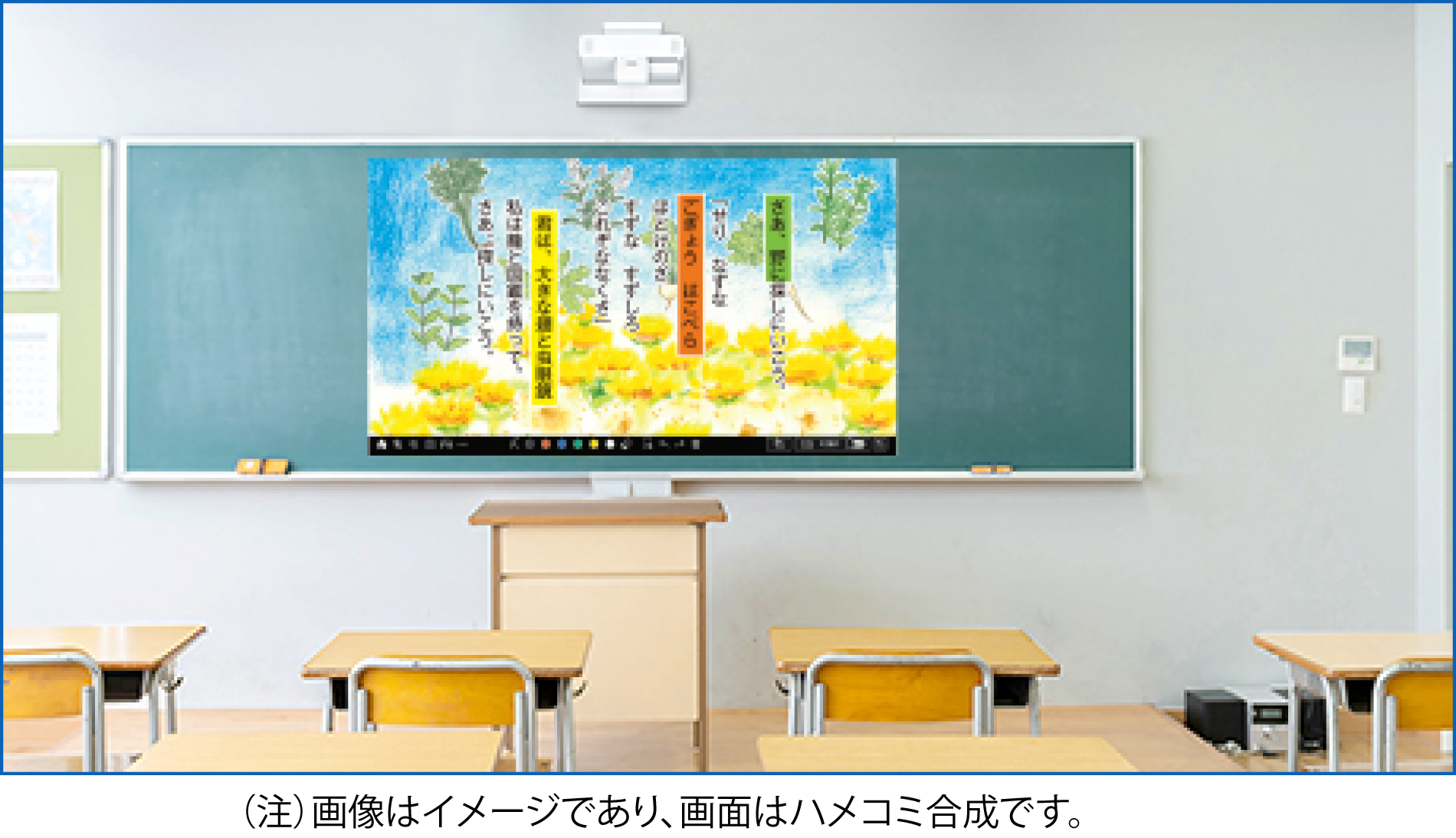 広い黒板に見せたいものを大きく、明るく、はっきり提示できるため、