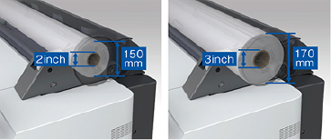 150m巻普通紙のような外径170mmロール紙や電飾用フィルム<表打ち>にも対応しました。