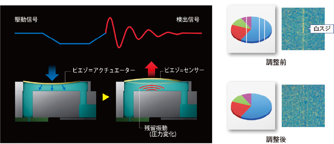 プリントヘッドのドット抜けをジョブごとに自動検知し画像を調整します。