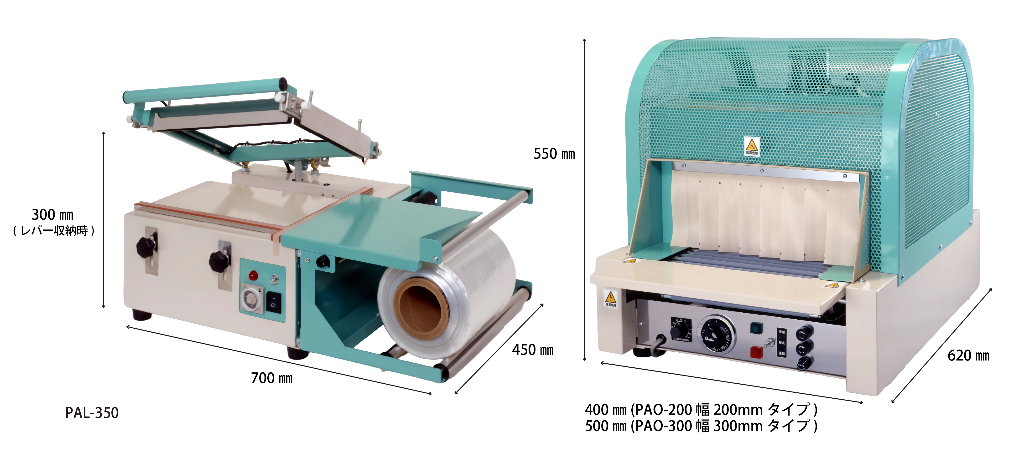 PAL-350&PAL-200・300は、100V電源で稼働するシュリンク包装機。