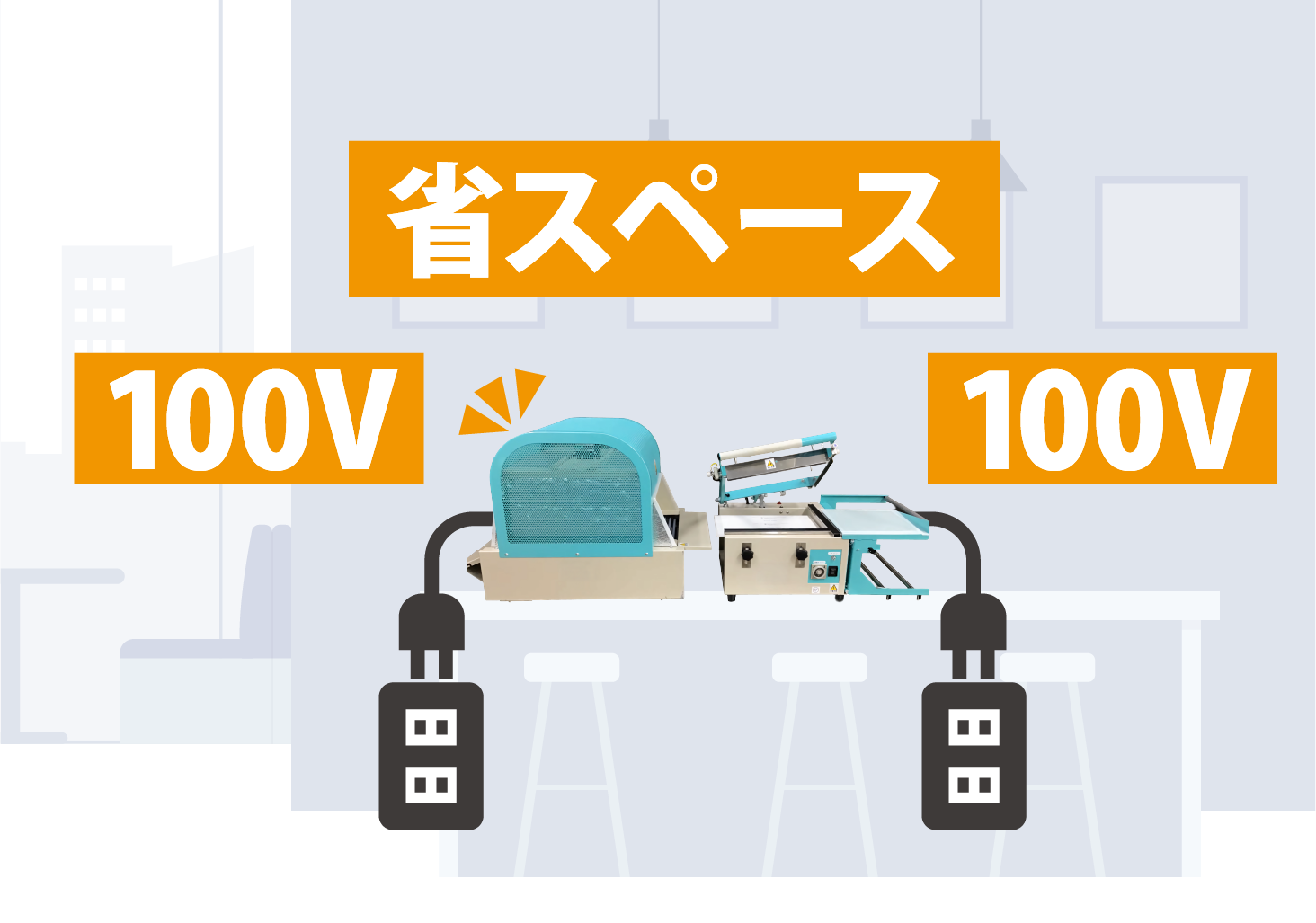 工事不要の100V電源稼働!小ロット多品種のカンタンシュリンク包装♪