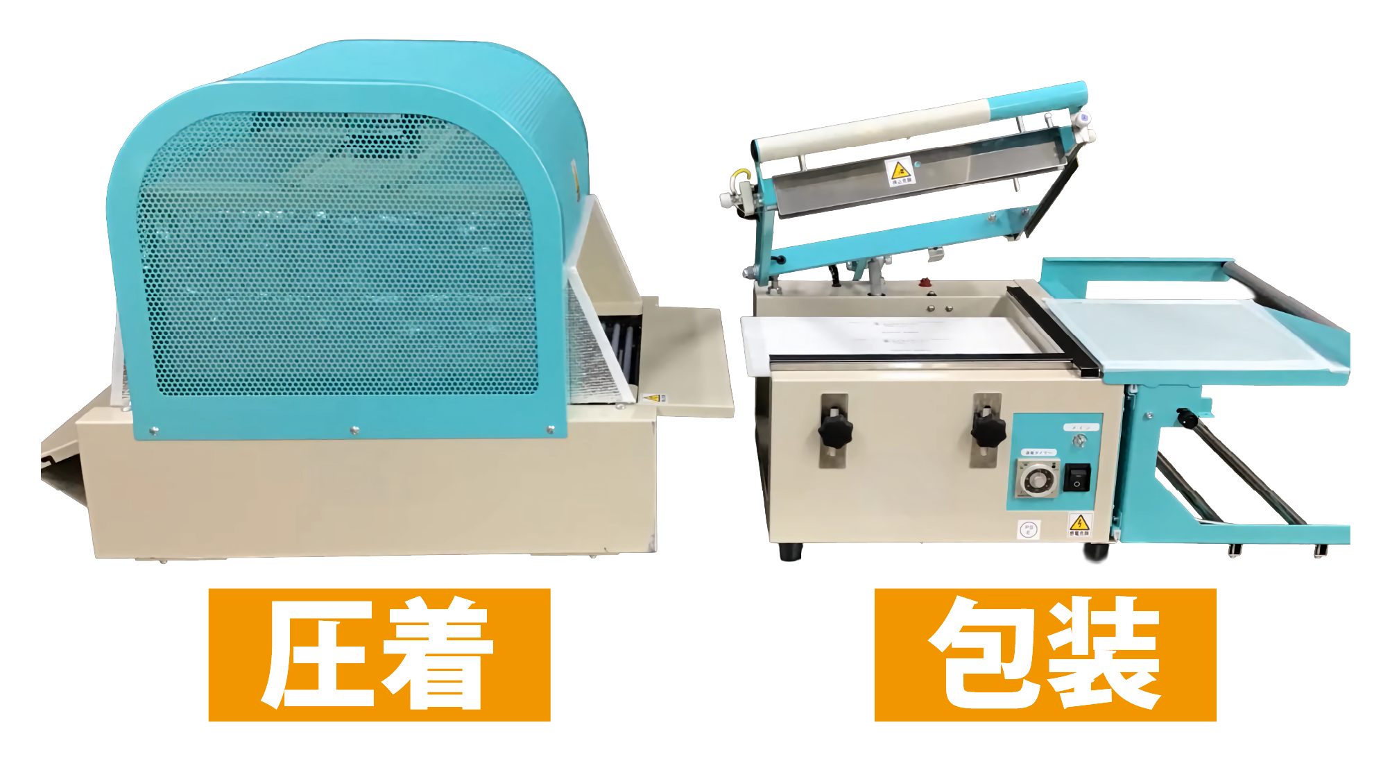 PAL-350でL字包装して、PAO-200もしくはPAO-300で熱風収縮させます。